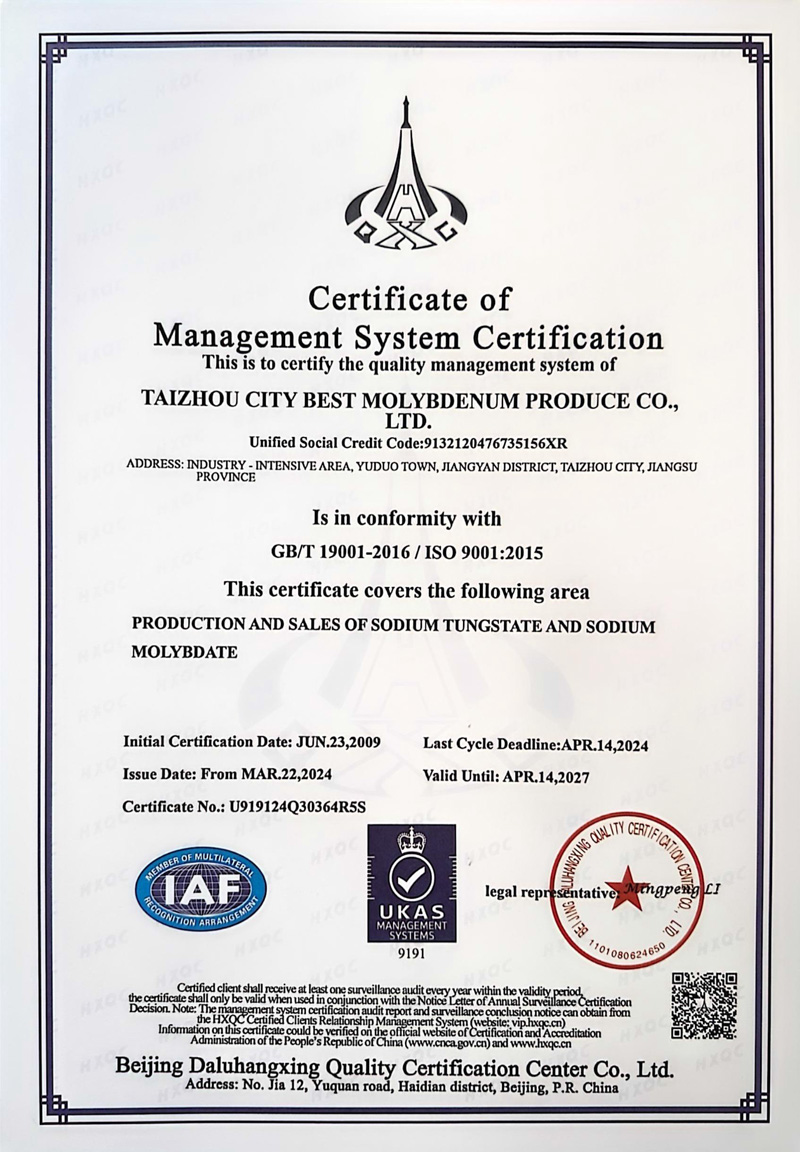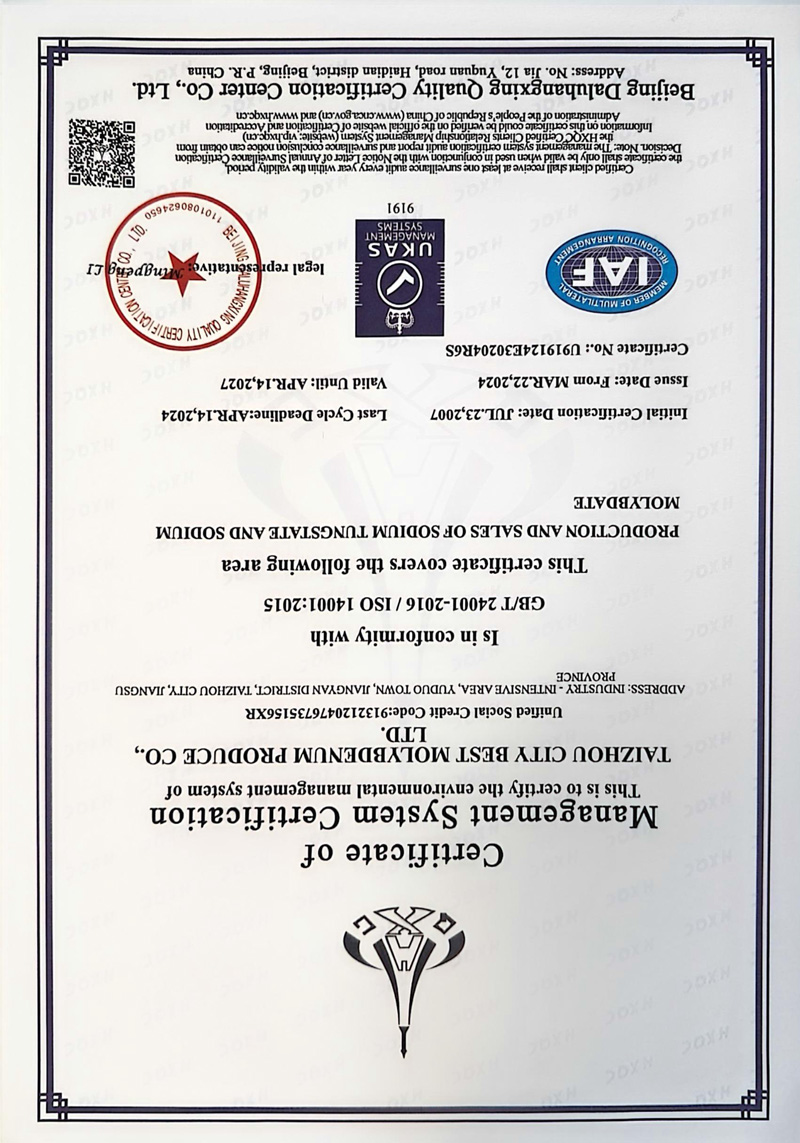Copyright(C)2023, Taizhou Best Molybdenum Products Co., Ltd. All Rights Reserved. Supported by ChinaChemNet ChemNet Toocle Copyright Notice 備案序號(hào):蘇ICP備05036568號(hào)